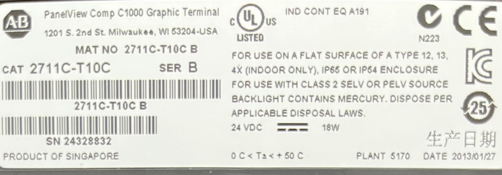Allen Bradley PANELVIEW C1000 2711C-T10C SER B 10" FARB-TOUCHSCREEN-SCHNITTSTELLE