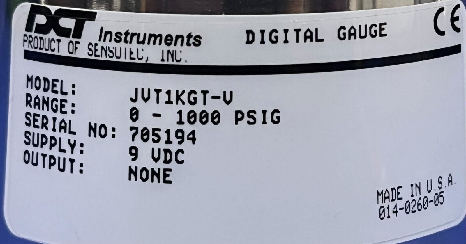 DCT INSTRUMENTS DIGITALES DRUCKMESSGERÄT PSIG 0-1000 JVT1KGT-V JV-SERIE