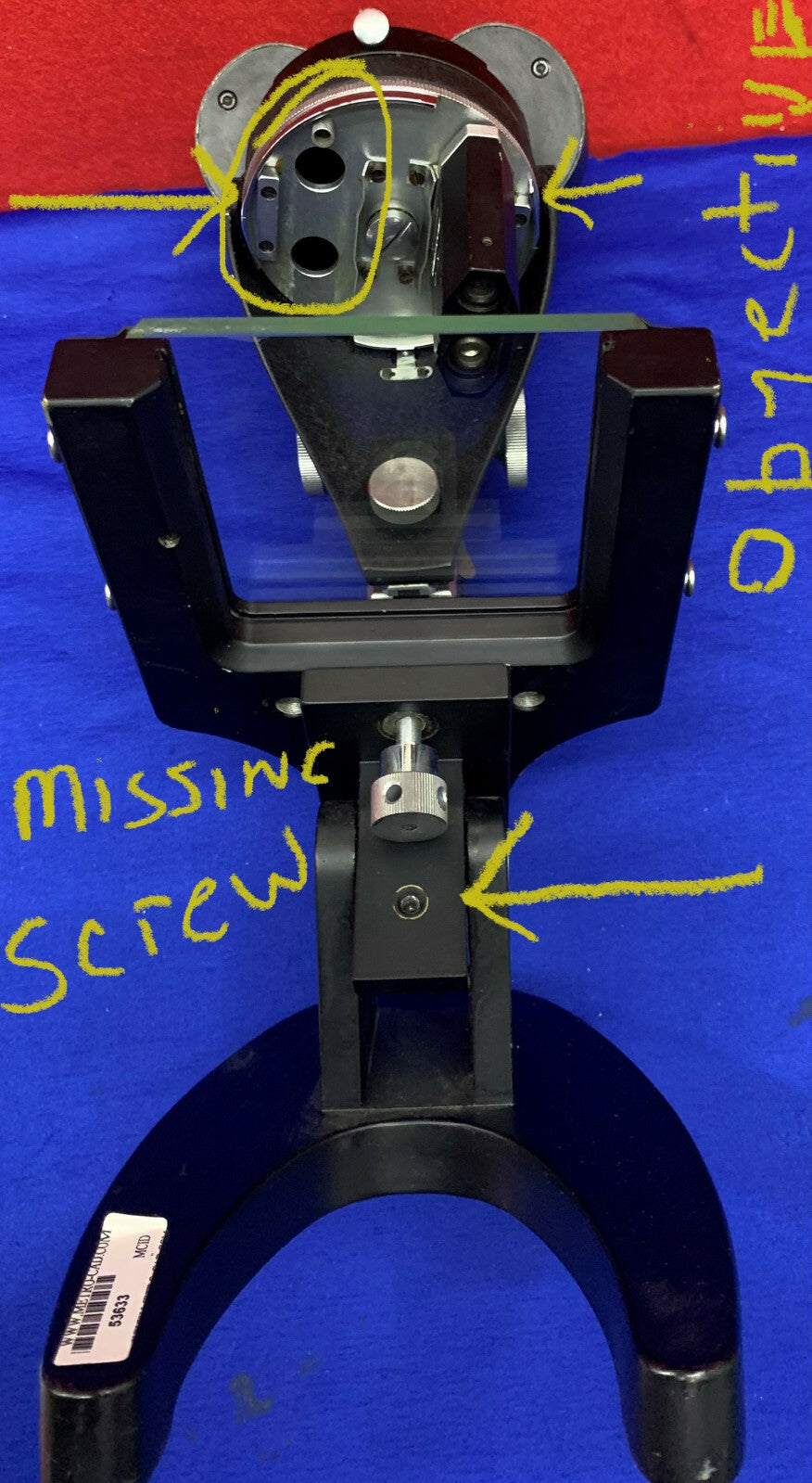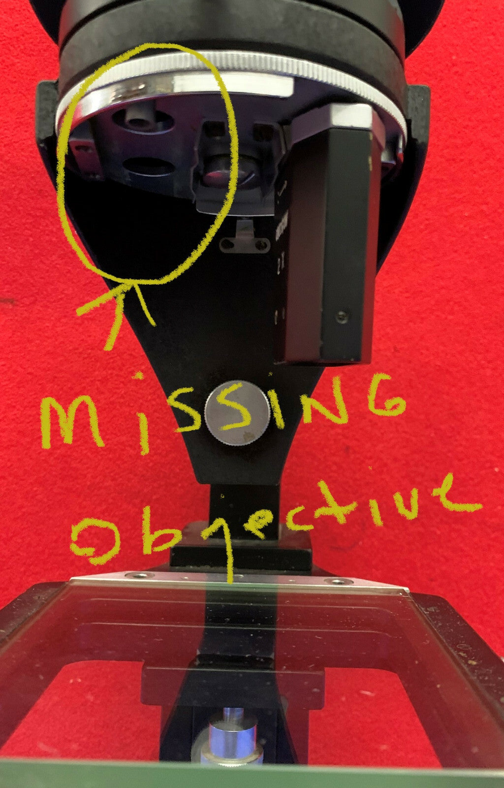 Das Mikroskop funktioniert mit einem 2-fach verschiebbaren Objektiv in der richtigen Position.