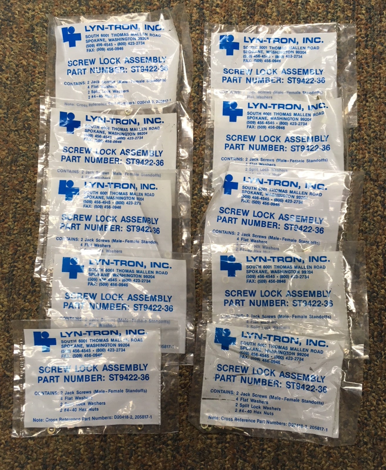 CANTIDAD 10 - LYN-TRON ST9422-36 / D20418-2 / 205817-1 CONJUNTO DE BLOQUEO DE TORNILLO