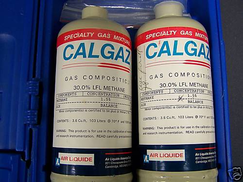2 bouteilles de gaz Calgaz, composition : 30,0 % de méthane LFL