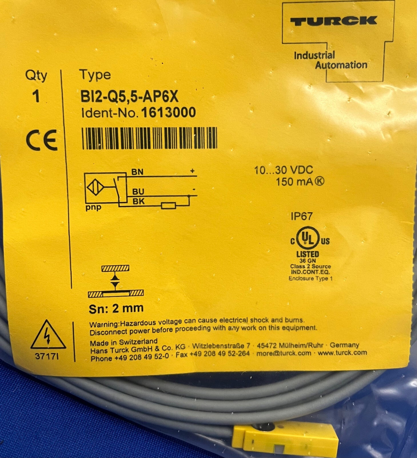 Détecteur de proximité Turck BI2-2Q5,5-AP6X, portée 2 mm, code d'identification : 1613000, 10-30 V CC