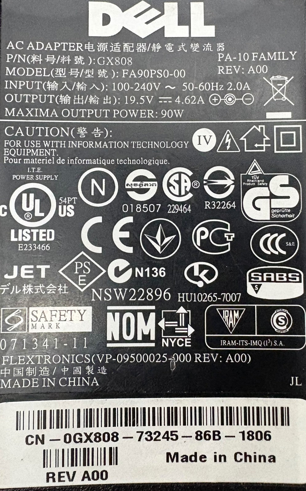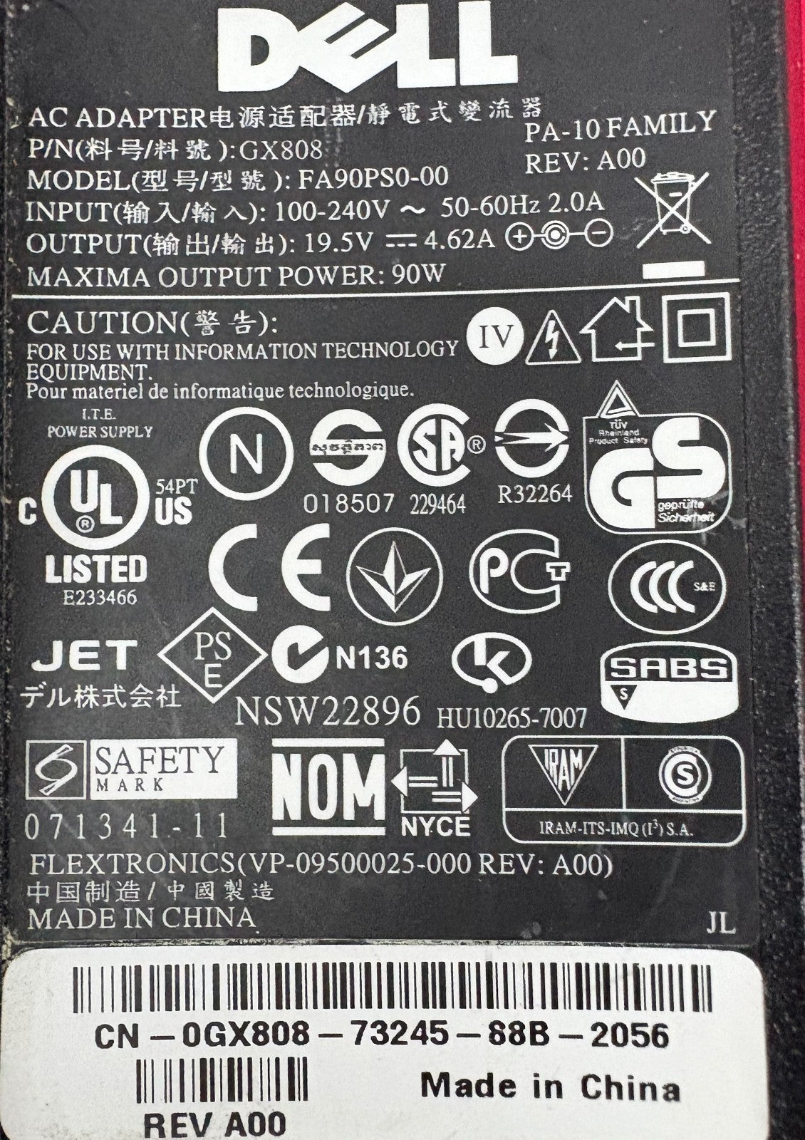 DELL FA90PS0-00 GX808 LAPTOP AC CHARGER POWER ADAPTER - 1 LOT QTY 2