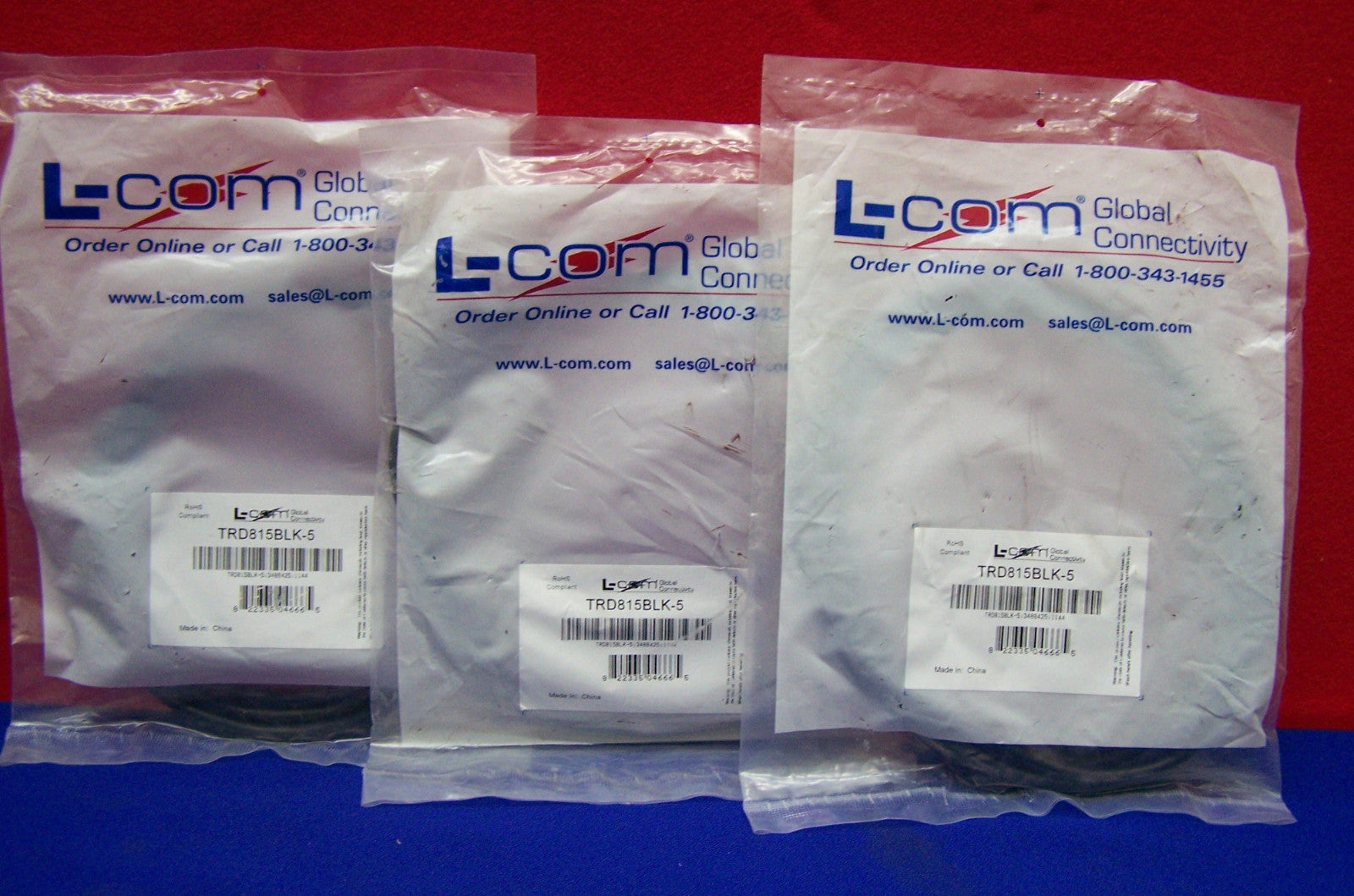 QTY 3 CAVI - L-COM GLOBAL CONNECTIVITY TRD815BLK-5 5E CAVO PATCH NERO 5 PIEDI