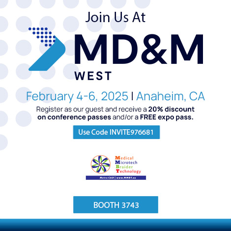 MMBT by Metro CAD は、2025 年 2 月 4 日から 6 日までMD&M アナハイムに出展します。アナハイム コンベンション センターのブース 3743 にぜひお越しください。静かな細線医療用ブレイダーの新製品ラインを展示しますので、ぜひお越しください。デジタル測定顕微鏡のセレクションもデモします。ブースは、人間工学に基づいたテーブルと椅子を備えたモジュラー クリーンルーム デザインです。お近くにお越しの際は、ぜひお立ち寄りいただき、当社がお客様のビジネスの成功にどのように貢献できるかをご覧ください。詳細については、 ここをクリックしてください。