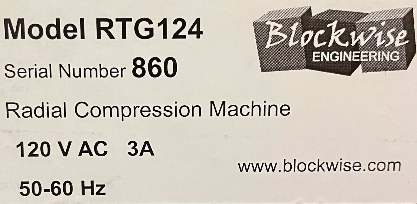 ブロックワイズエンジニアリング ラジアル圧縮クリンパーマシン RTG124 120VAC 3A