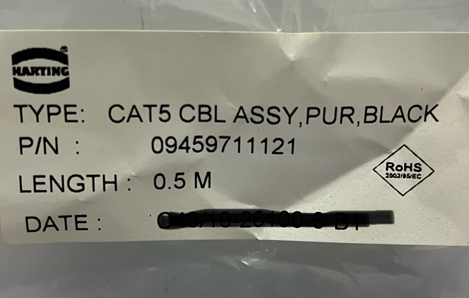 HARTING 09459711121 パッチコード RJ45 エンド CAT5 長さ 0.5 m