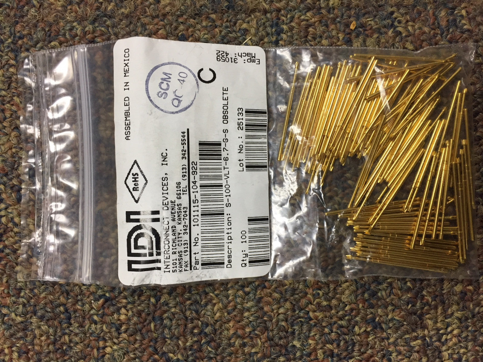 説明: S-100-VLT-6.7-GS。袋は新品未開封です。数量 100 ピン。