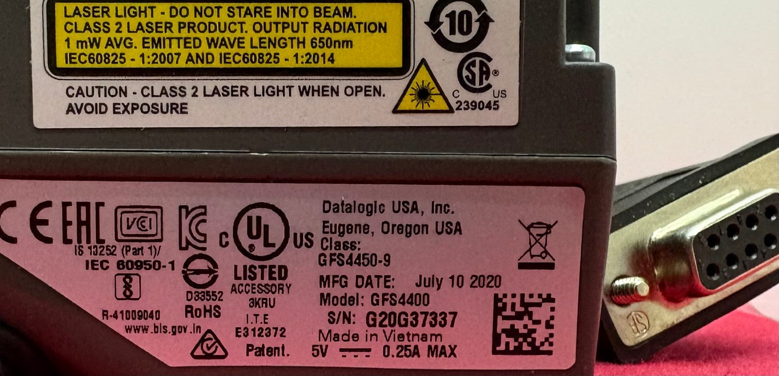 DATALOGIC GFS4450-9 BARCODE SCANNER GFS4400 5V 0.25A - FOR PARTS/REPAIR