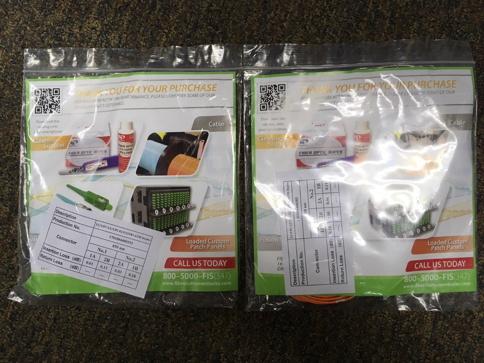 FIS Custom Patch Fiber Cable, Duplex 3mm MM 62.5um OM1 Fiber LC/PC to LC/PC 3m