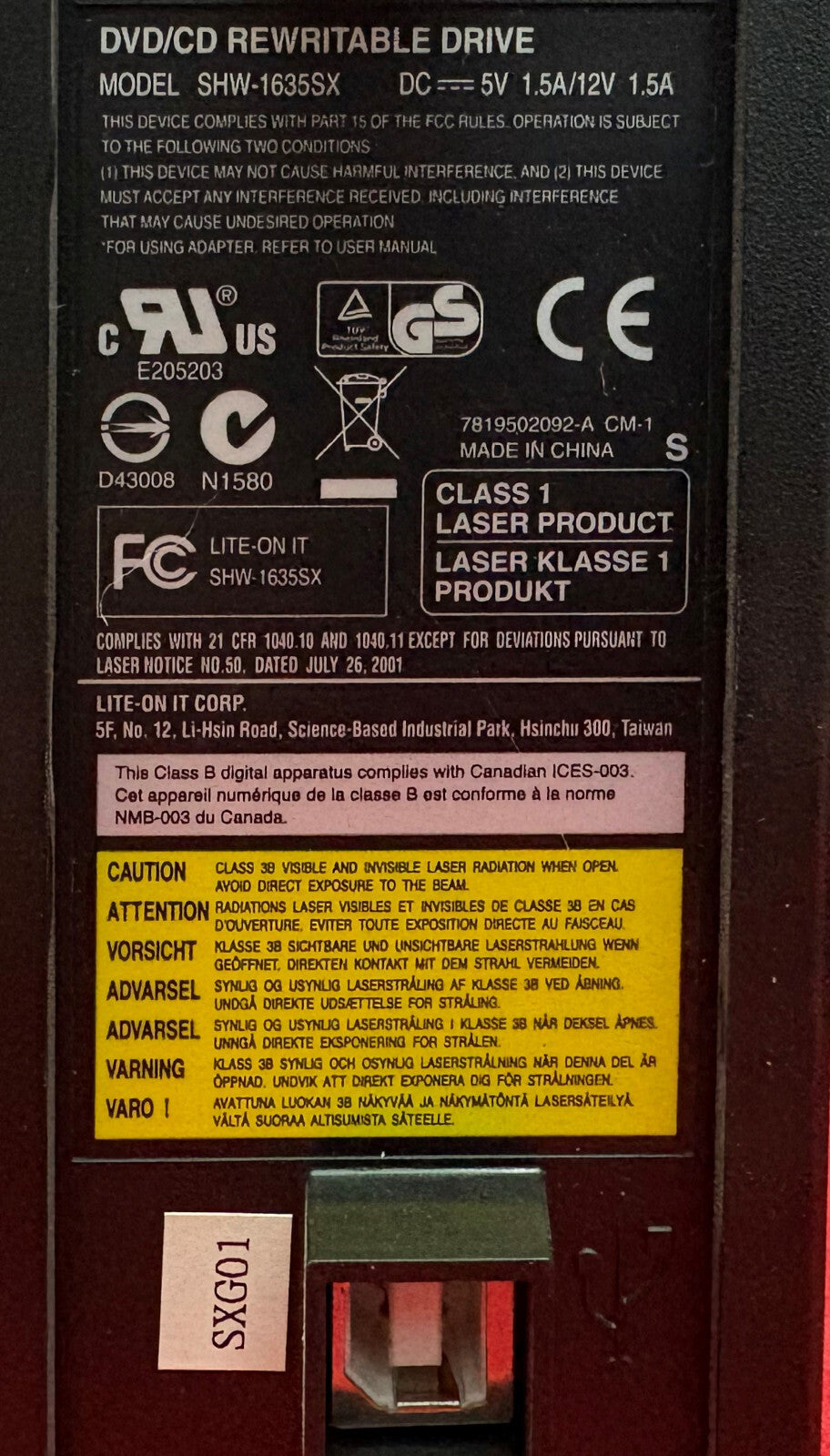 LITE-ON SHW-1635SX DVD/CD RE-WRITABLE DRIVE R/RW R DL COMPACT DISC / RW DVD+R DL