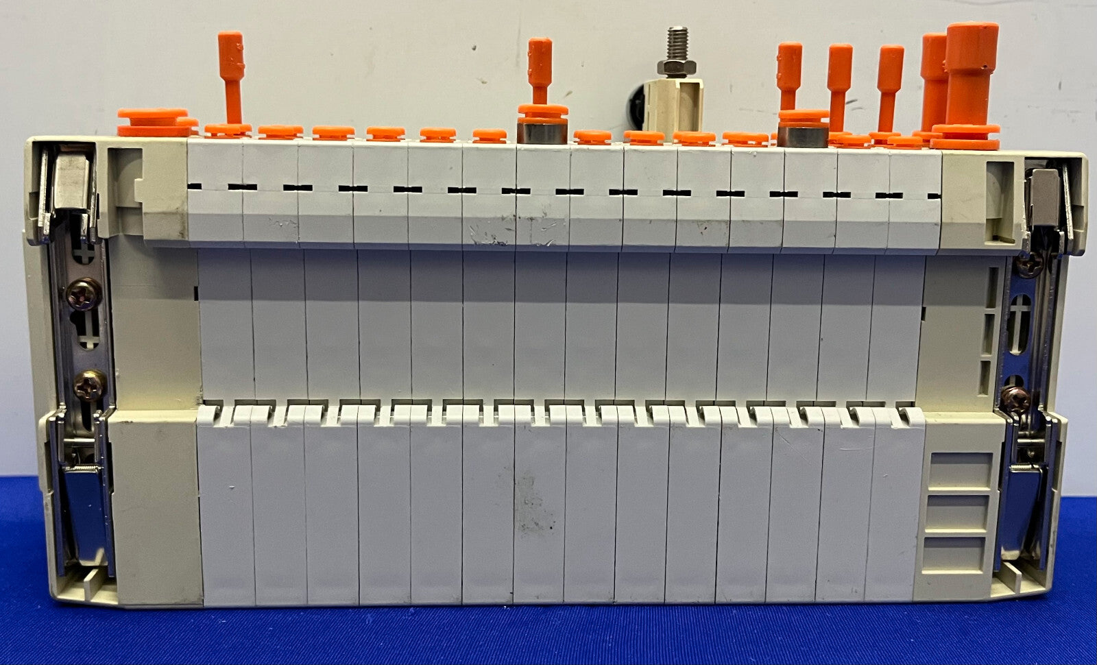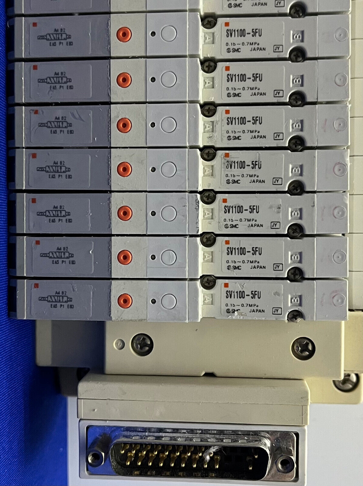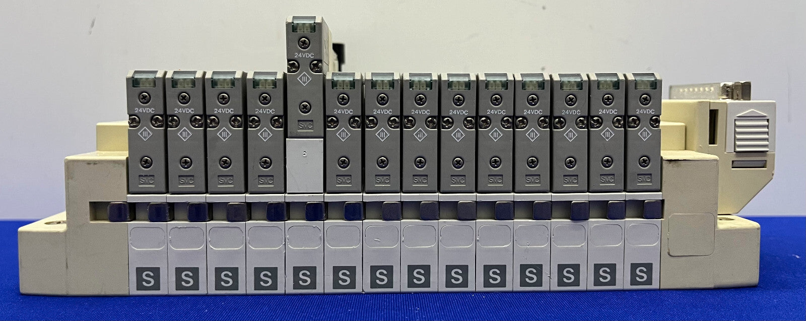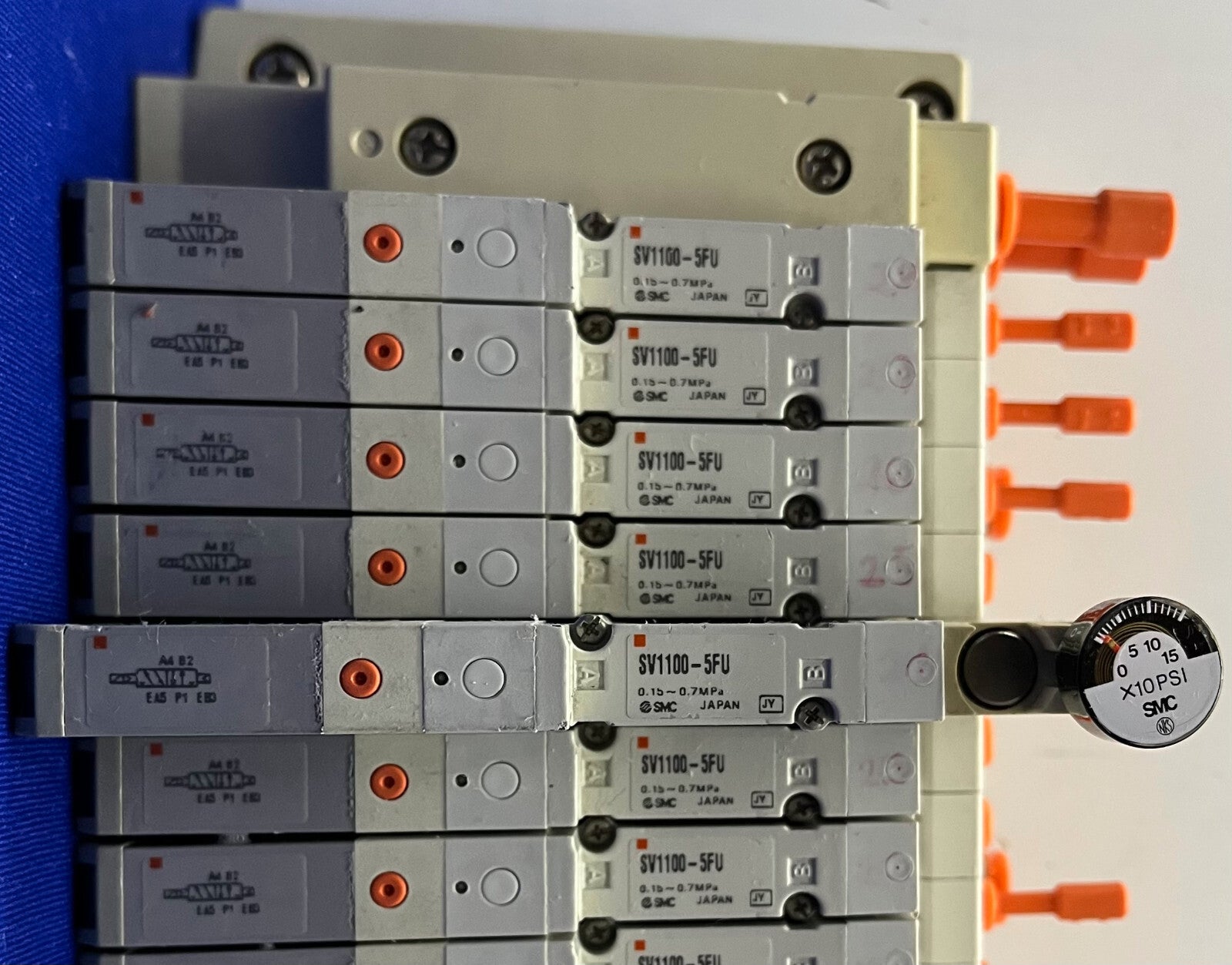 SMC SS5V1-1010983-03-1 MANIFOLD w/ 14 QTY SV1100-5FU PNEUMATIC ASSEMBLY BLOCK