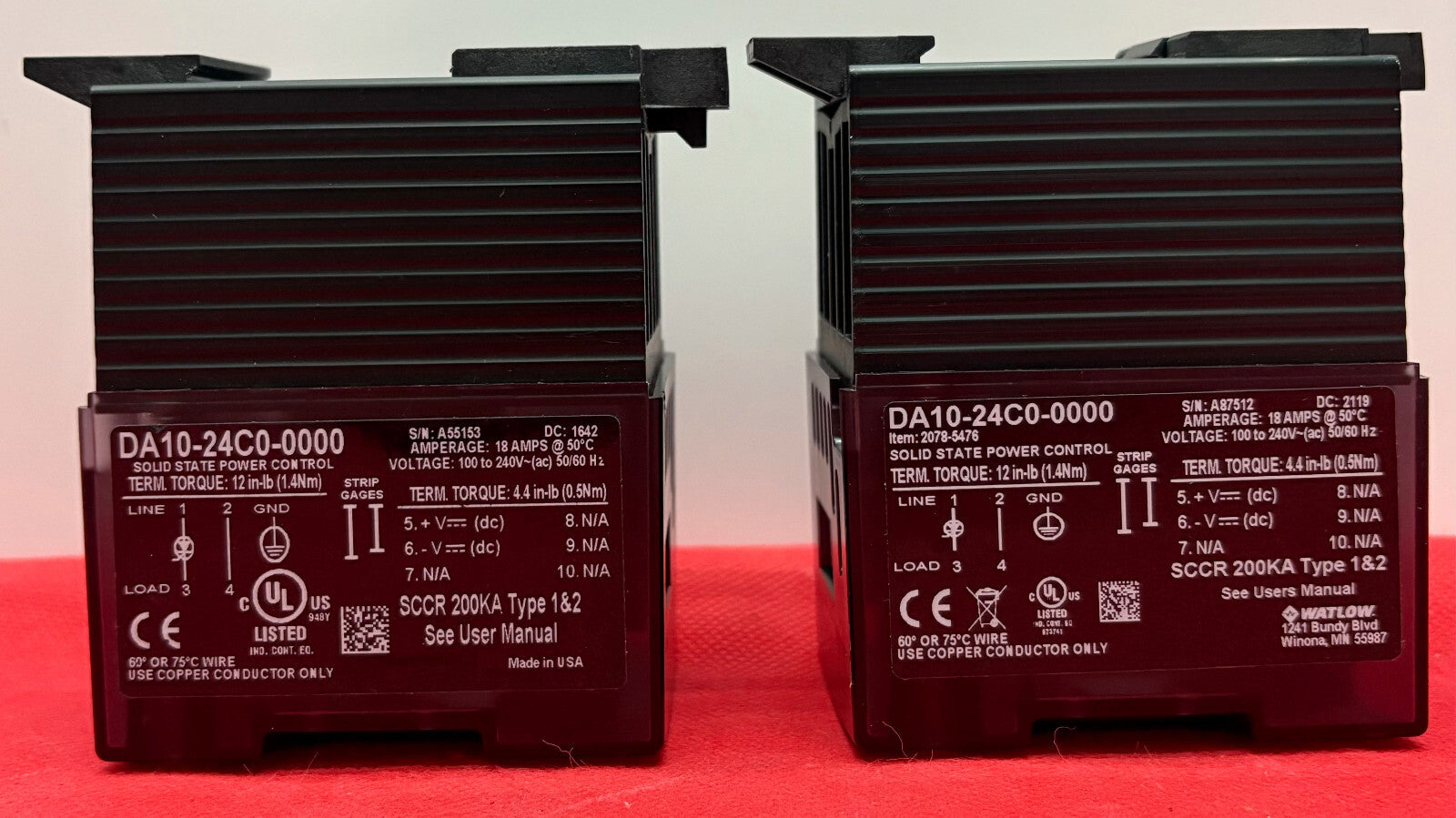WATLOW DIN-A-MITE DA10-24C0-0000 SOLID STATE POWER CONTROL - 1 LOT QTY 2
